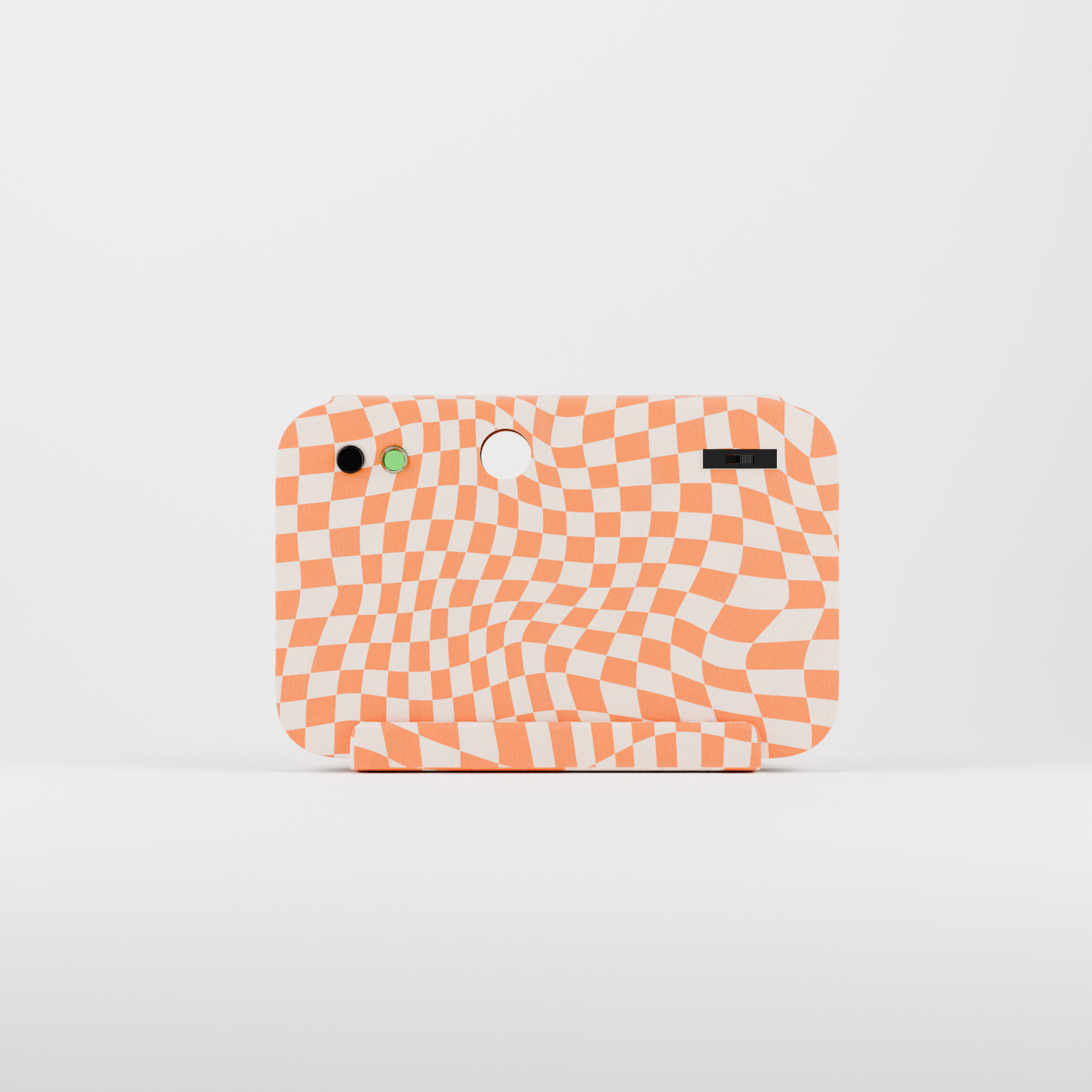 Groovy Check Vibes Orange: Bold orange checkerboard pattern on durable canvas, channeling 70s disco dreams and playful retro energy. Shields your Cappy Camera with lightweight, eco-conscious flair, perfect for the vibrant creator chasing groovy, unapologetic aesthetics.